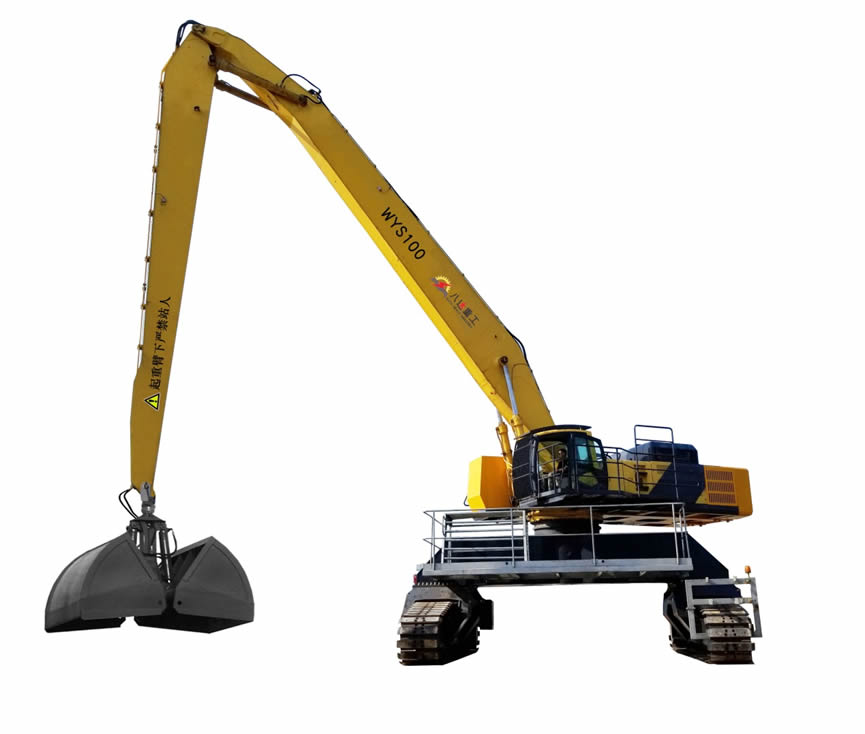 WYS series hydraulic crawler type steel grabber can be equipped with diesel engine drive, electric drive or oil electric hybrid "double power" drive system, which is reliable in quality